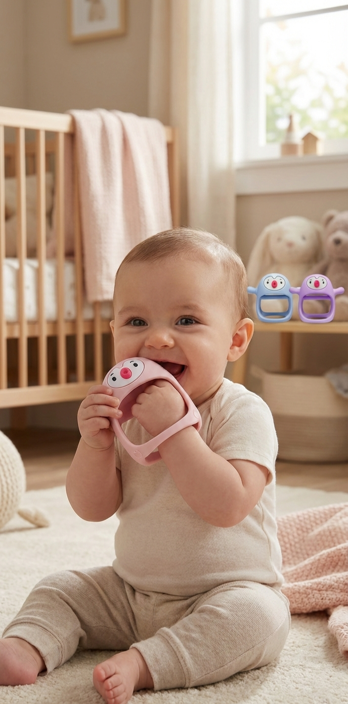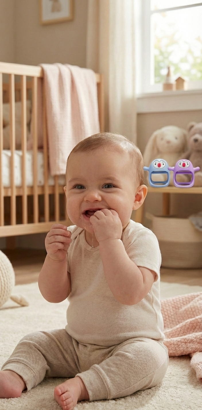 כפפת נשכן רכה ונעימה שמרגיעה את החניכיים ומפחיתה כאבי שיניים – בלי שהנשכן ייפול כל רגע.