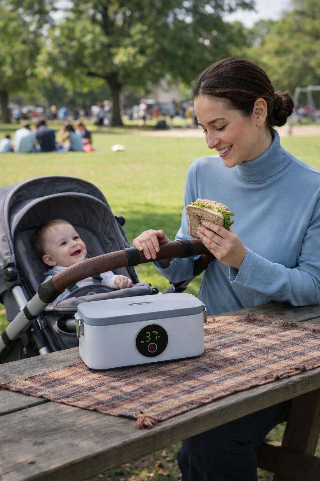 קופסת אוכל חשמלית חכמה – מחברים לחשמל, מחממים מראש, והאוכל נשמר חם לאורך זמן.